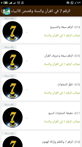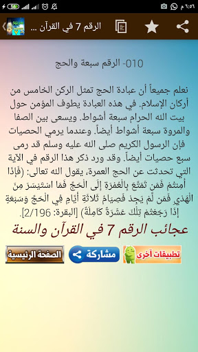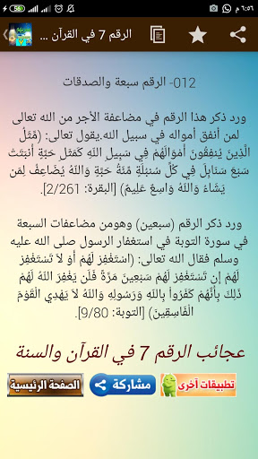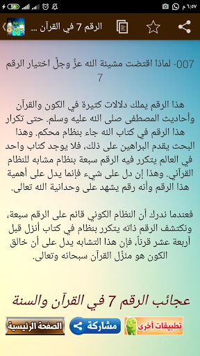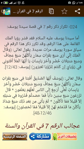 - يرسل اشعارات عن آيات وأحاديث وقصص انبياء ذكر فيهم رقم 7يومياً