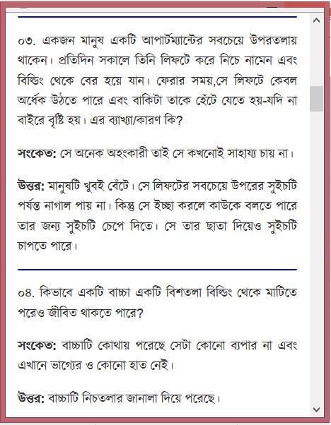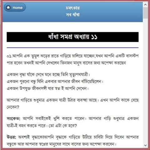আমাদের এই অ্যাপটি মোটামোটি এক হাজারের মত ধাঁধা এবং ঝটপট প্রশ্নের উত্তর নিয়ে ডেভেলপ করা হয়েছে। এটি খুব সহজভাবে সাজানো হয়েছে। এই অ্যাপটি আশা করি ব্যবহারকারীদের জন্য অনেক গুরুত্বপুর্ন একটি অ্যাপ হবে এবং তদের অনেক উপকারে আসবে।