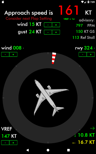 تحصل على شاشة تعمل باللمس رسومية من عنوان الطائرات واتجاه الرياح و مكونات الرياح / crosswind مع الألوان تنبيهات عند تجاوز القيود مثل Crosswind و Tailwind وحتى عند الاقتراب من سرعة الحد من Flap Placard الخاص بك، حتى تتمكن من إجراء هبوط رفرف جزئي. سهلا!