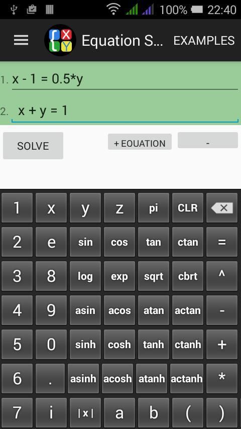 آلة حاسبة يمكن أن تحل جميع أنواع نظم المعادلات (باستثناء تلك الفرق)، مثل: