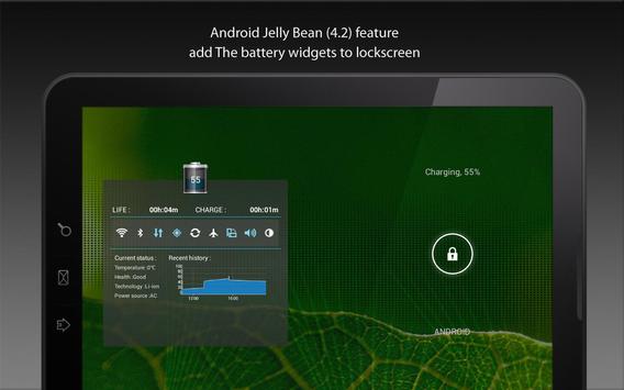 battery charge indicator level power source status battery saver lock screen widget process statistic management