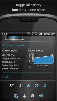Toggle system functions (sound,wifi,bluetooth,gps,data,...) all in one place to reduce your battery drain.