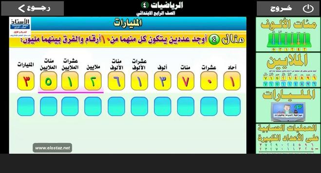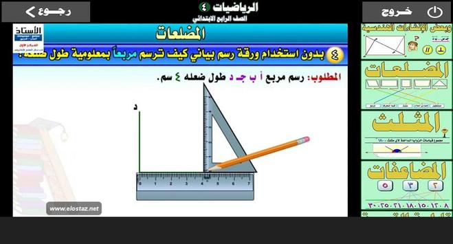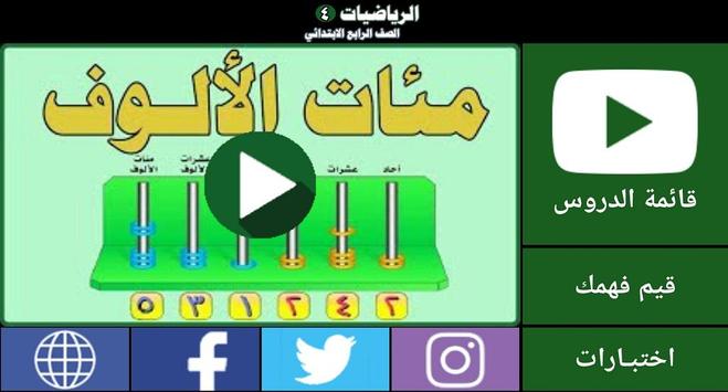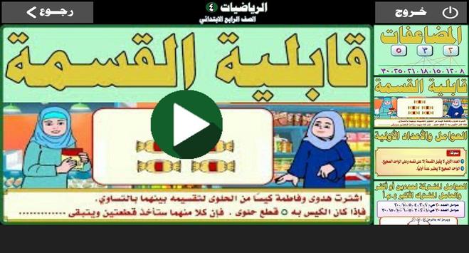 يحتوي التطبيق على شرح شامل بالصوت والصورة لدروس منهج الرياضيات للصف الرابع ابتدائي كامل للفصليين الدراسيين