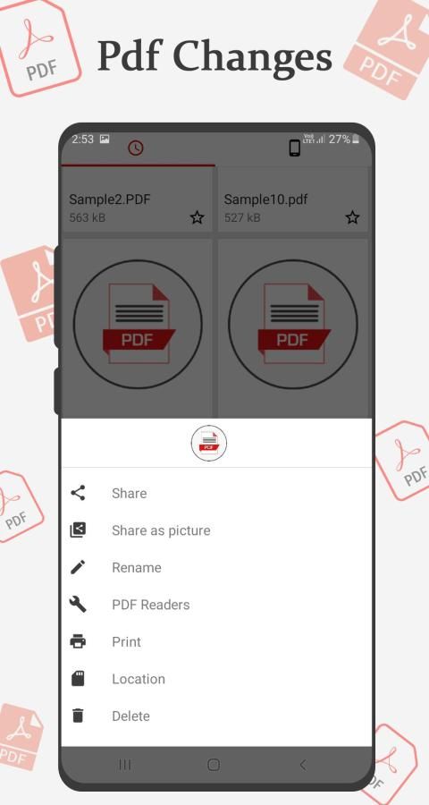 • Delete/Rename - You can easily change the name, delete the file, and view details of your PDF file. Share it to your fellow colleagues by email or co-worker at this screen.