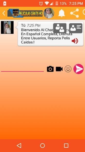 Por Otra parte de la App cuenta con Un Chat para tu mayor entretenimiento donde podrás disfrutar con los usuarios de la App, Reportar Pelis Caídas.