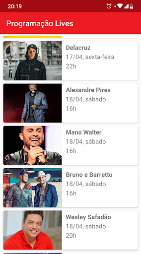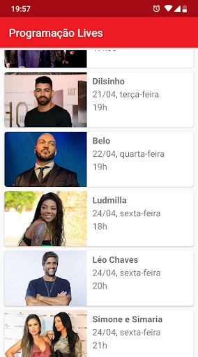 Fique por dentro dos dias e horários que acontecem as Lives dos artistas e não perca nenhuma!