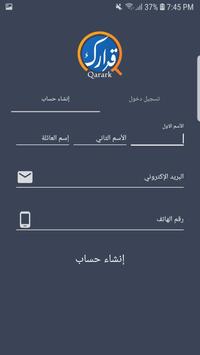 قرارك هو تطبيق يتم تحميله من المتجر على هاتفك المحمول بحيث يمكنك عن الإستعلام عن القرارات الصادرة من محكمة التمييز أولاً بأول من خلال ارقام القرارات، وفور تسجيل عملية الدخول للتطبيق وادخال المعلومات الخاصة بك (الاسم، رقم الهاتف، الإيميل) لضمان السرية والمتابعة بشكل صحيح ووصول المعلومات والقرارات للشخص صاحب العلاقة سيتم تزويدك باسم مستخدم ورقم سري والتاكد منكم شخصياً برغبتكم بتفعيل الحساب ومن ثم تتم عملية ايداع قيمة الاشتراك في البنك او تسديدها لنا مباشرة، سيتم تفعيل حسابكم مباشرة وإعلامكم بذلك.