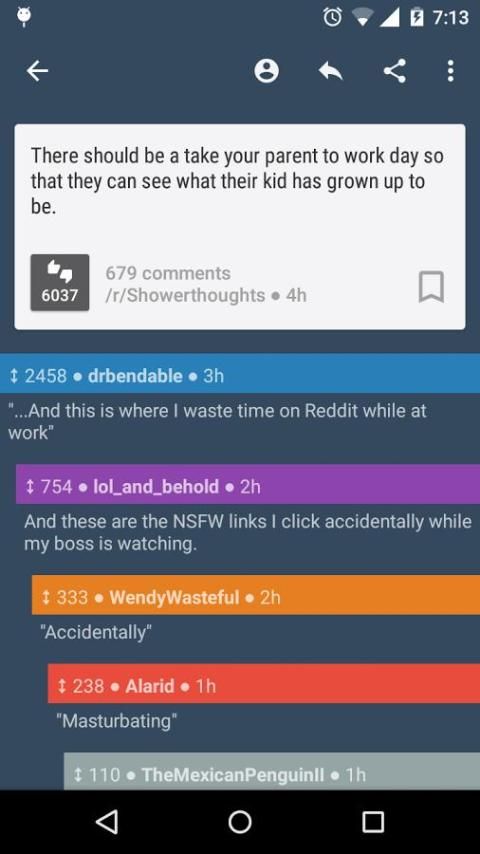 يمكن Redditors أيضا نشر تعليقات حول تقديم، والاستجابة ذهابا وإيابا في محادثة شجرة من التعليقات؛ يمكن أيضا تعليقات أنفسهم أن upvoted وdownvoted. الصفحة الأولى من الموقع نفسه تظهر مجموعة من الوظائف بأعلى تصنيف ائتماني من كل subreddits اشتراك مستخدم ل.