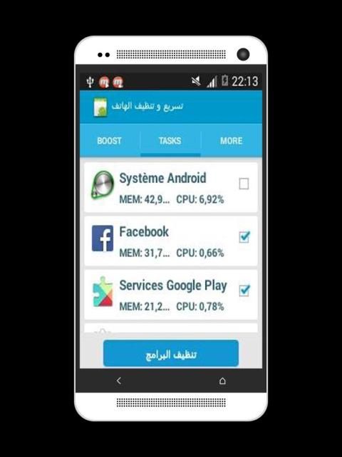 تطبيق تنظيف الهاتف والتابلت 2015 بسرعة عبر ازالة التطبيقات غير الضرورية وتفريغ الرام ومسح الملفات غير المهمة, التطبيق جديد لسنة 2015 ويمكن للجميع استخدامه لسهولة التعامل معه, فقط بالضغط على تسريع سيقوم التطبيق بتنظيف الرام ram (الداكرة العشوائية), كما ستجد معلومات عن حالة الجهاز عامة والتطبيقات التي تستهلك قدرا كبيرا من الرام وبطارية الهاتف.