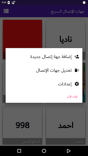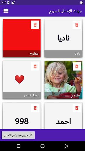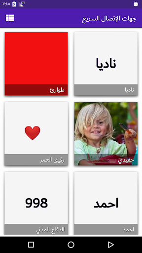 جهات الإتصال السريع هو تطبيق بسيط وسريع للإتصال بجهات اتصال معدة مسبقة وهو مناسب ورائع لكبار السن والصغار وأولئك الذين يعانون من مشاكل نظر ووصول.