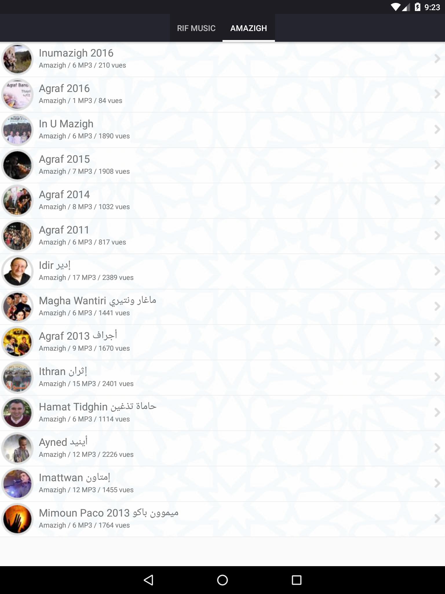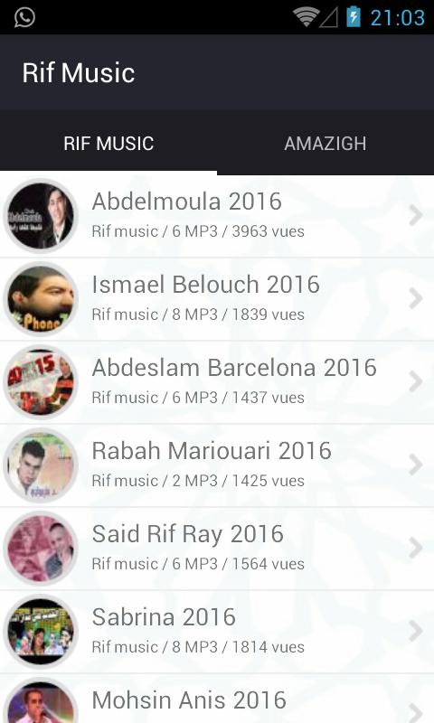 organisé dans deux catégories "rif music" pour les region de nador : midar, zegangan, driouch, selouane, boudinar, rifmelody, temsamane, rifdia, midarhoy, nadorbox, rifcity, et catégorie "amazigh music" pour la musque classique rifaine.