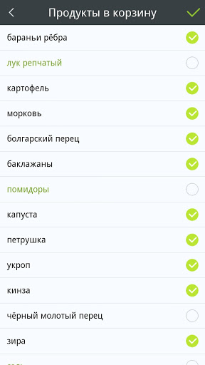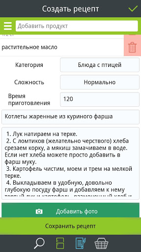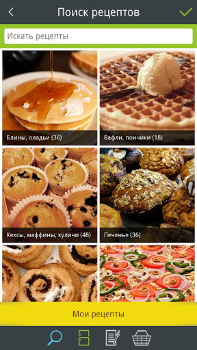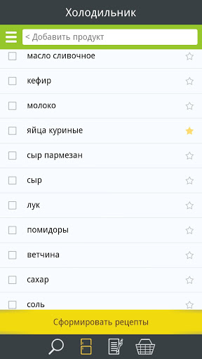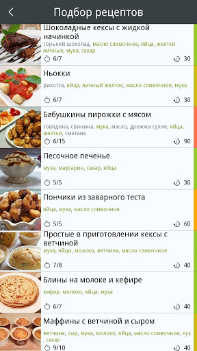 الوظيفة الرئيسية للتطبيق هي مجموعة مختارة من وصفات الأطباق التي يمكنك طبخ الآن! نقل محتويات الثلاجة الخاصة بك في التطبيق واختيار ما تريده!