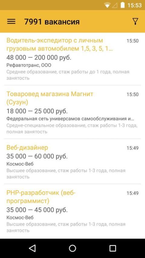 Applications of other companies that can help with your job search: hh.ru (headhunter), avito.ru (Avito work), superjob.ru (superdzhob), rabota.ru (Jobs py); rabota66.ru (operation 66), job.ru (Jobe), rosrabota.ru (rosrabota), indeed.com (indid), rabota.yandex.ru (Yandex work), careerist.ru (climber).