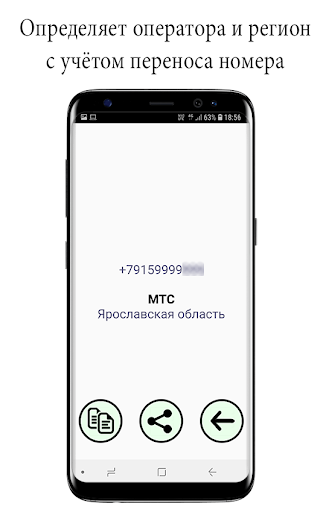 باستخدام هذا التطبيق ، يمكنك معرفة عن طريق رقم هاتف مشغل الهاتف المحمول (MTS ، Megafon ، Beine ، Tele2 ، Yota ، إلخ) ومنطقته.دائما المعلومات ذات الصلة ، لأنيتلقى التطبيق بيانات من قاعدة البيانات عبر الإنترنت.