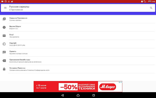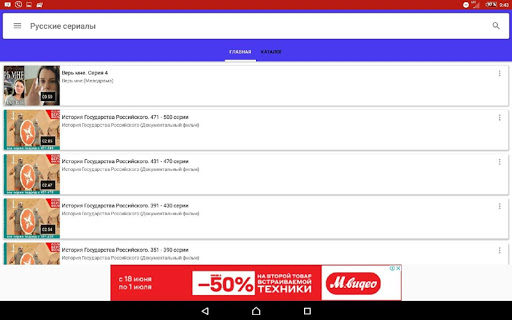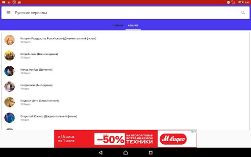 في التطبيق، سلسلة TV الروسية يمكنك مشاهدة السلسلة عبر الإنترنت مجانا، ولكن لسوء الحظ لا يمكن أن ننظر بدون الإنترنت.