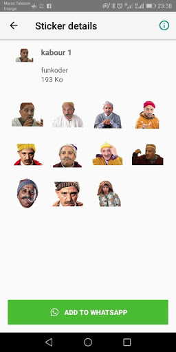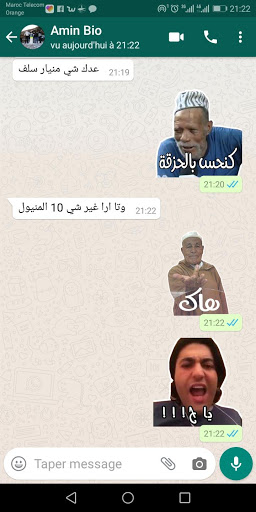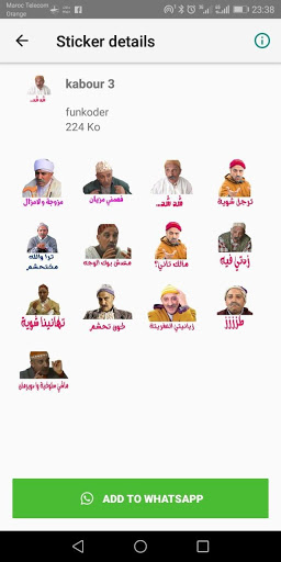 تطبيق ملصقات مغربية للواتساب سوف يضيف الى محادثتك الكثير من المتعة و الترفيه بالستعمال تلك الملصقات الوتساب الجميلة و الرائعة و يمكنك ايضا مشراكتها مع اصدقائك و ايضا مع العائلة و اخلق معهم الكثير من المواقف المضكة و المثيرة مع كبور و الشعبية .