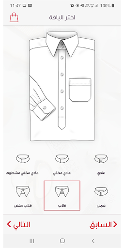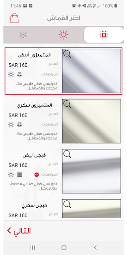 اختر ثوبك: يتم اختيار مواصفات الثوب مثل نوع القماش واللون والخصائص