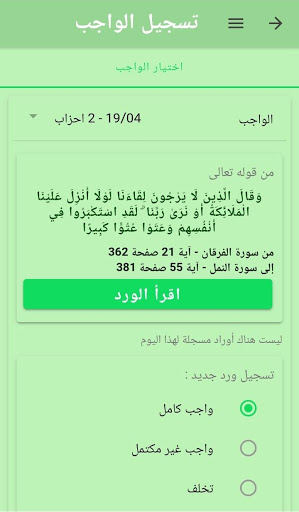 - قراءة الورد وتأكيده في التطبيق يوميا