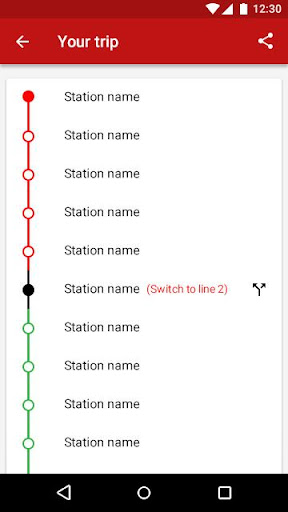 مخطط الرحلة - التطبيق هايعرض لك مسار الرحلة كامل بكل المحطات اللي هاتمر بها والمحطة الحالية آو التالية ويساعدك تعرف تحول بين الخطوط في أي محطة.
