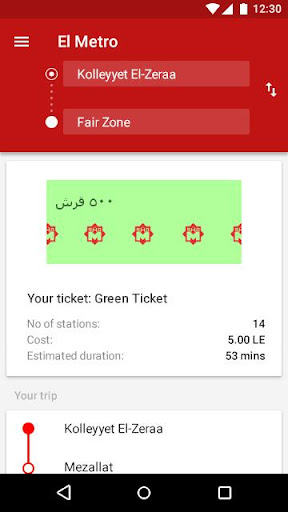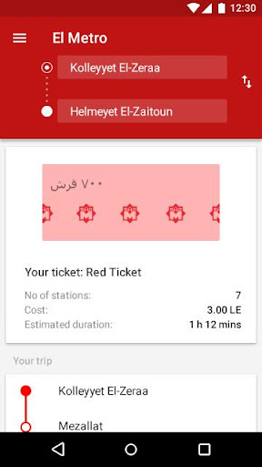 تطبيق المترو بيساعدك تحدد نوع التذكرة اللي أنت محتاجها، ببساطة اختر المحطة اللي أنت فيها والمحطة اللي عايز توصل لها، تطبيق المترو هايحسب عدد المحطات اللي هاتعدي عليها ويحدد من خلالها نوع التذكرة اللي آنت محتاجها من غير ما تحتاج تسآل حدد آو تدور في الخرايط.