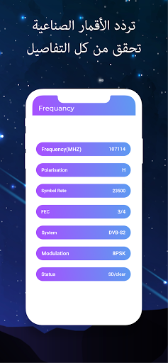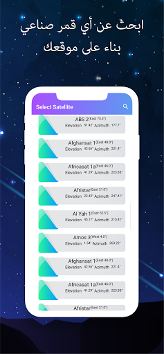 Satfinder هو تطبيق للعثور على القنوات الفضائية ويمكن للمستخدم رؤية الموضع الصحيح للقمر الصناعي عليه