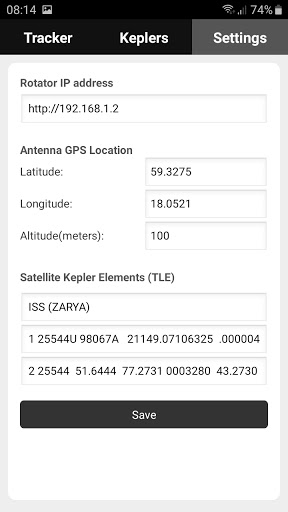 مع التحكم في Satran يمكنك إضافة أي عناصر Kepler (TLLS) لالقمر الصناعي الذي تريده، والبرنامج يتوقع موقفه بالنسبة لك.يجب تحديث TLE بانتظام لإعطاء تنبؤات دقيقة، ويمكن العثور على العناصر الحالية لجميع الأقمار الصناعية تقريبا عبر الإنترنت من Celestrak.يتصل بسارع HTTP على LAN المحلي الخاص بك، أو إلى Satran تم إعداده بالوصول عبر الإنترنت.