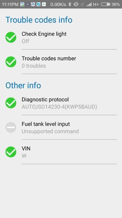 - قراءة البيانات الحية (السرعة، RPM، محرك درجة حرارة المبرد، تحميل المحرك، وتقليم الوقود قصيرة / طويلة المدى والوقود وضغط الهواء وغيرها).