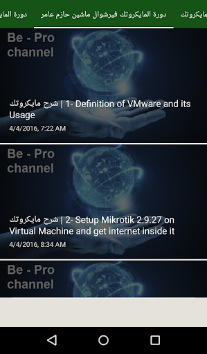 2. دورات لروتر المايكروتك : دورات كاملة لروتر المايكروتك من خبراء المايكروتك كما يعرض التطبيق أهم الفيديوهات التى تهتم بمجال المايكروتك على اليوتيوب وأهم القنوات حيث يتم تحديث القنوات بمجرد نزول فيديو جديد على اليوتيوب فى مجال المايكروتك.