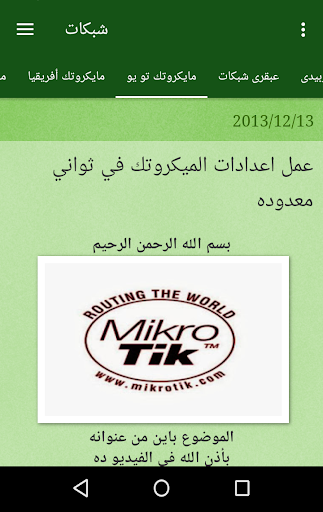 3. الشبكات اللاسلكية : يعرض لك التطبيق جميع الفيديوهات التعليمية وكل ما هو جديد فى عالم الشبكات اللاسلكية وأدهزة يوبيكيوتى واجهزة التى بى لينك وأجهزة النانو ستيشن وكل ما يتعلق بالشبكات اللاسلكية من مشاكل وحلول وأراء.