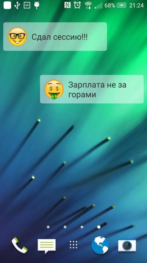 بارد القطعة "يا مزاج" لضبط المزاج في الشاشة الرئيسية. انها تسمح لك للتعبير عن مشاعرك بمساعدة عدد كبير من الرموز والأيقونات تحديثها باستمرار. لتثبيت القطعة، مع الاستمرار على المساحة الحرة على سطح المكتب الخاص بك. ملاحظة على بعض الأجهزة تظهر القطعة في القائمة إلا بعد إعادة التشغيل.