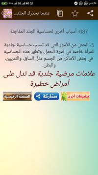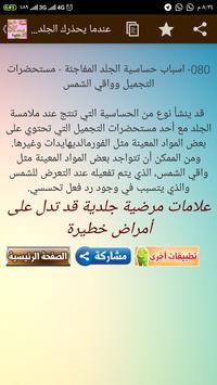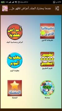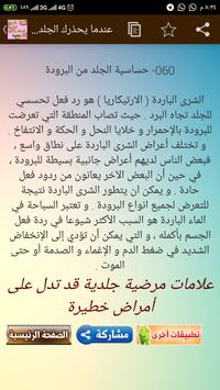 لون جلدك وملمسه وتجاعيده هل عليه بقع.. فهناك العديد من العدوى والأمراض الخطيرة التي تظهر علاماتها المبكرة على الجلد؛ من أجل التحذير، ومن أهم تلك العلامات الدالة على الأمراض نستعرضها معاً في 10 نقاط ولكن عليك انت وحدك ملاحظة هذه الأعراض إذا حدثت لك أو لأحد من أسرتك فأنت ستكون المنقذ لهم وبعد الـ 10 نقاط نستعرض في تطبيقنا حساسية الجلد عند الكبار والأطفال في نقاط موجزة ونتمنى أن يحوز تطبيقنا رضاكم آملين في تقييمنا ونشر التطبيق حتى يستفيد به باقي أسرتك وأصدقائك