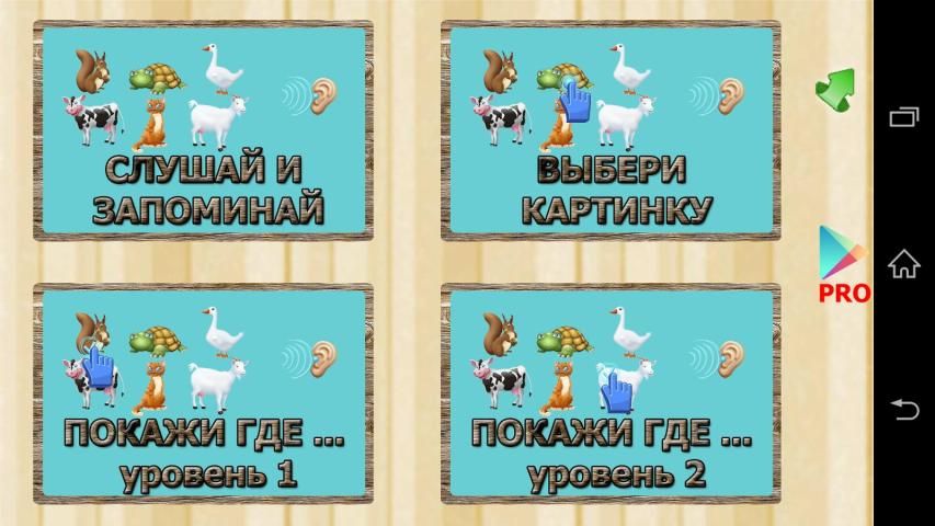 حدد نوع اللعبة، "اختر صورة" وسماع الكلمة أو "تظهر فيها" الكلمة التي يتحدث بها.