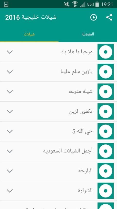 - قائمة الشيلات المختارة, يمكنك تخصيص قائمتك الخاصة بالشيلات المختارة من التطبيق و سماعها متسلسلة.