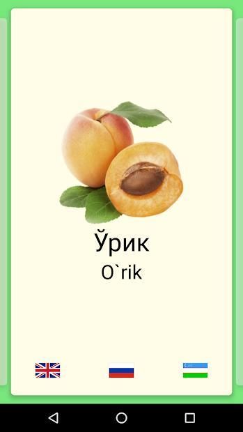 Mevalar+ dasturimiz mevalar, gullar, hayvonlar va sabzavotlar oʻzbek tilida rasmlari bilan berilgan. Dastur rasmlarni ruschada va inglizchada gapirish imkoniyatiga ham ega. Dasturimiz nafaqat yosh bolalarga balki kattalar uchun ham asqotadi.