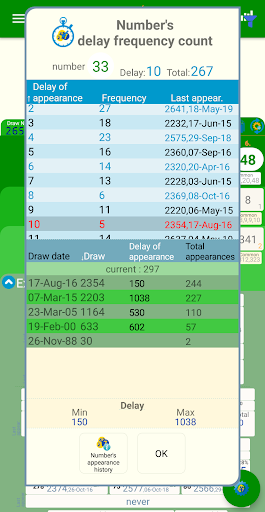 في المرة الأخيرة التي ظهر فيها رقم ، إجمالي عدد مرات ظهور الرقم ، وغير ذلك الكثير