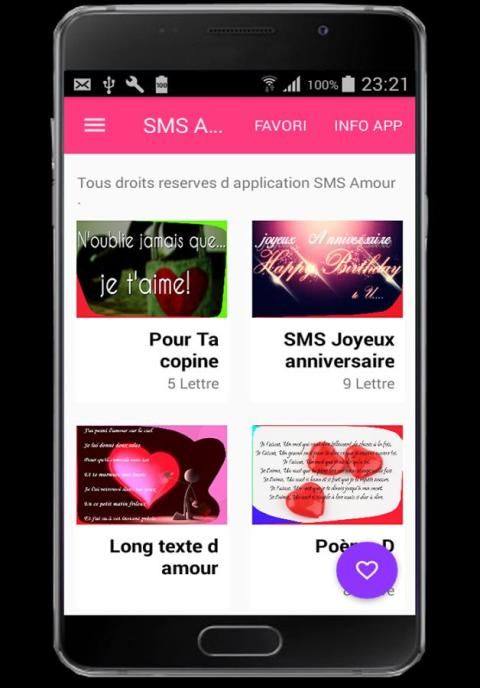 يحتوي التطبيق أفضل رسالة حب باللغة الفرنسية.