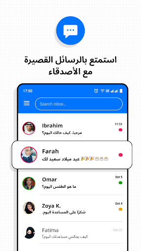 البحث الفعال عن الرسائل: 🔎 يمكنك العثور على الرسائل وجهات الاتصال بسهولة من خلال واجهتنا المنظمة وسهلة الاستخدام.