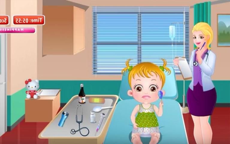 مستشفى الفيديو الحلو طفلة والأذن طبيب ومساعدة طبيب أسنان الأطفال