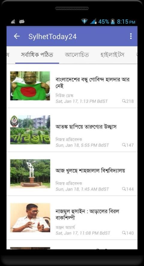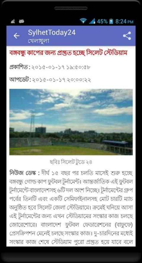 وقد نشرت Sylhettoday24 التطبيق الرسمي مع الميزات الرائعة بما في ذلك كسر تحديث الأخبار، والتي يحددها المستخدم فئة أنباء التحديث وغيرها الكثير. ليس فقط الأخبار سيلهيت، يوفر التطبيق وطنية أخبار بنغلاديش أيضا. مجرد تثبيت التطبيق على جهاز الروبوت الخاص بك، والحصول على اتصال مع البنغالية الأخبار في أي مكان وفي أي وقت.