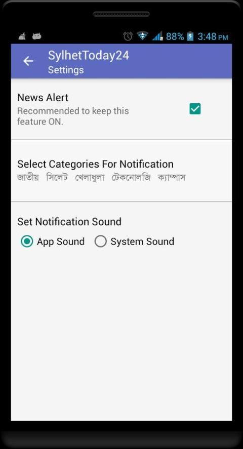 * News Notification will be sent to phone as soon as news become available on server.