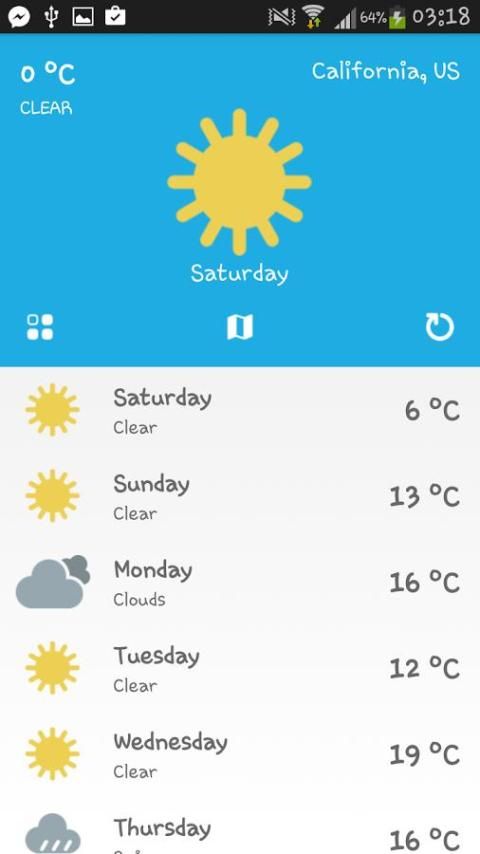 الطقس هو تطبيق بسيط الذي يوفر توقعات لمدة 6 أيام القادمة. يمكنك خطة يومك مع توقعات الطقس الأكثر الحالي ودقيقة، فقط اسحب لأسفل الطلب والحصول على أكثر التوقعات المحدثة.