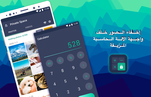 تتيح لك Calculator Space إخفاء الصور والصور ومقاطع الفيديو في مساحة مخفية ، وخلف رمز الآلة الحاسبة وواجهة كلمة مرور الآلة الحاسبة.