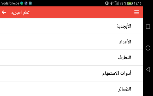 تطبيق عبري مقسم الى عدة أقسام هي كالتالي