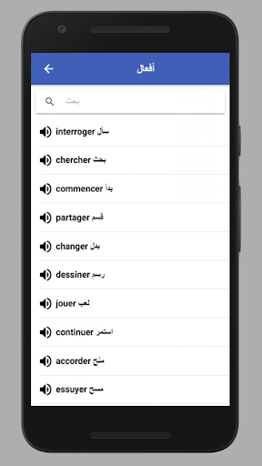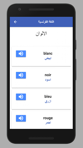 التطبيق باللغة العربية ويقدم ترجمة عربية لأهم الكلمات الفرنسية المستعملة بالصوت وبدون انترنت