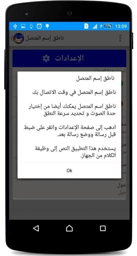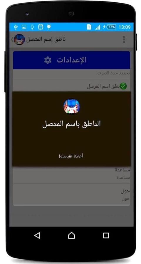 ★★★★★ ناطق اسم المتصل برنامج لمعرفة اسم المتصل أو تطبيق الرنة بإسم المتصل بدون أنترنيت الآن متوفر على اندرويد بحيث ادا وصلتك مكالمة و انت تقود سيارتك , في عملك أو متواجد في غرفة اخرى يمكنك مع هذا التطبيق المفيد جدا أن تعرف من الذي يتصل بك بدون لمس الهاتف وذلك لأن تطبيق برنامج لمعرفة اسم المتصل يتحدث وينطق اسم المتصل او مرسل الرسالة عند وصول رسالة يقوم بقراءة محتواها أيضا ان أردت تفعيل هاته الخاصية, التطبيق سهل جدا و يمكن تشغيله حتى بدون نت ...