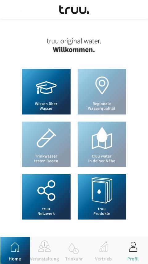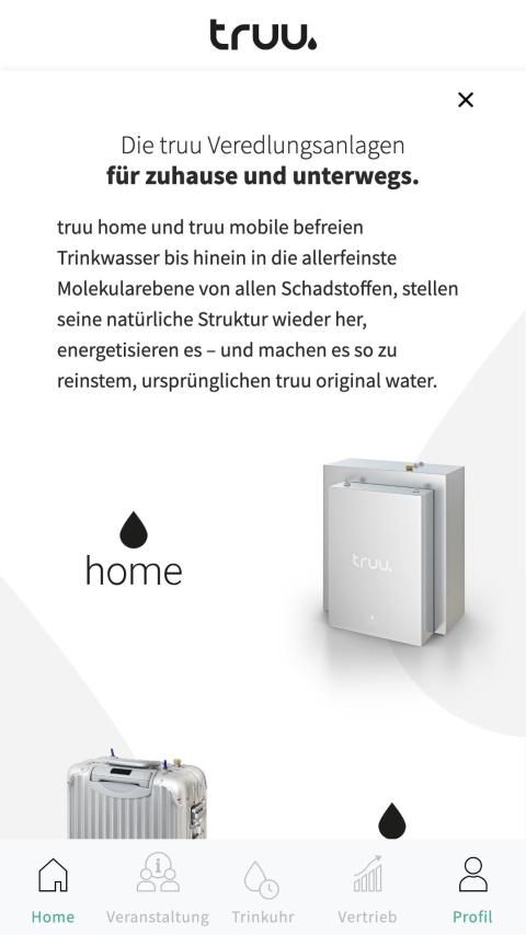 Enter the world of truu or manage your office as truu expert / owner. For all those interested the app provides first information about pure, original truu original water. At the same time, you can get an initial overview of the systems that you can use to produce cell-accessible truu original water for yourself - whether at home, on the move or in the office.