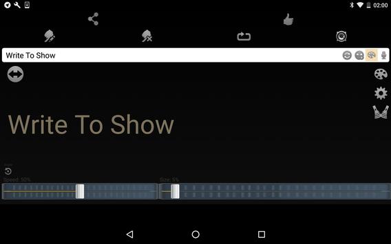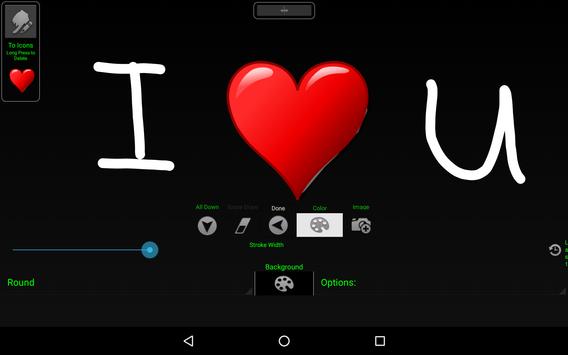التطبيق يسمح لك لكتابة وتسجيل إلى نص أو رسم التدليك في أي طول الجهاز يمكن التعامل مع (يعتمد على الذاكرة ذاكرة الوصول العشوائي) وتصميم من قبل الحجم، والألوان، ونمط الخط وأكثر من ذلك.