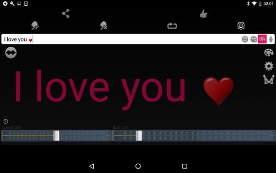 عند الضغط على "نص عرض" زر - سيتم عرض كل ما تبذلونه من النص والخلفية على الشاشة وفقا لالإعداد الخاص بك - من اليمين إلى اليسار أو من اليسار إلى اليمين في سرعة المحددة.