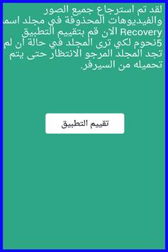 بعد تحميل التطبيق و تتبيته في الهاتف تضغط على زر إسترجاع لكي يعمل التطبيق على إسترجاع صورك و فيديوهاتك المحدوفة