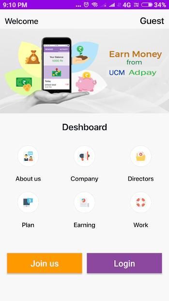 UCM Adpay app is online ad app. for earn money by ad click. you can do online job here.